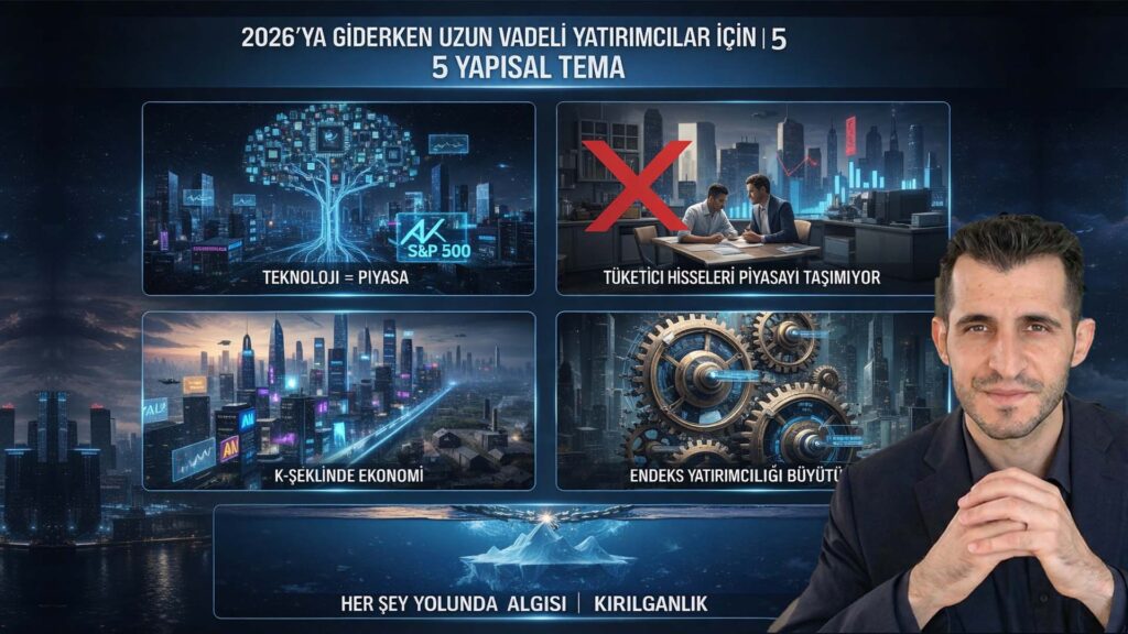 Bu yazıda, bugünkü fiyat hareketlerinden bağımsız olarak, önümüzdeki yılları şekillendirecek 5 uzun vadeli yatırım temasını ele alıyorum. Amaç “hangi hisse” değil, hangi zihniyetle portföy inşa edilmesi gerektiğini göstermek.